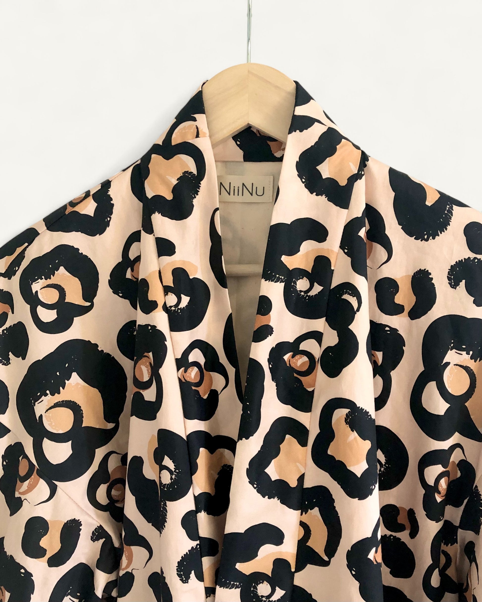 This one-of-a-kind Haori is crafted from an original NiiNu textile — Hana Leopard print. Each piece is handmade from GOTS-certified organic cotton, creating a lightweight, expressive garment that feels like wearable art. No two are ever alike.